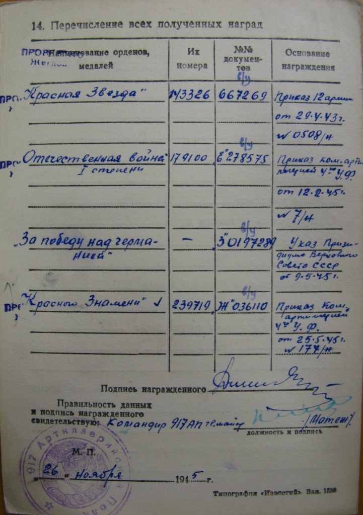 Орден Боевого Красного Знамени №239719 кавалер Дмитриев А.А.гвардии майор в.и.о.командира полка