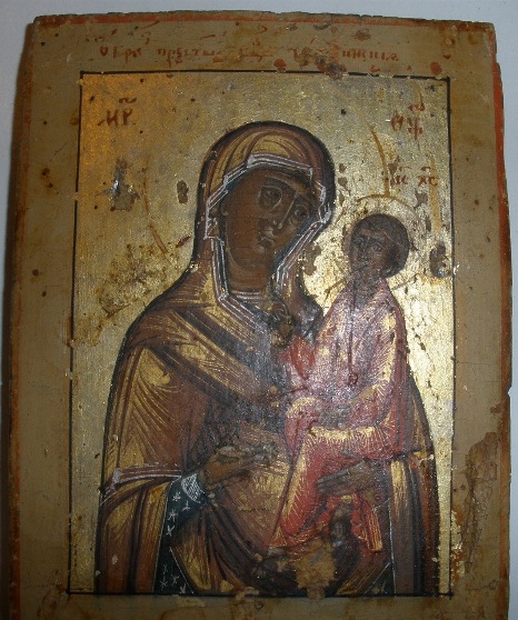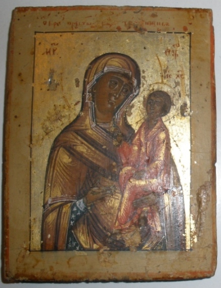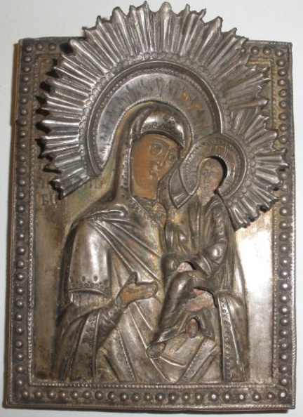 Икона Тихвинская,на окладе надпись Троеручица.Но третьей руки нету,не на окладе не на иконе.