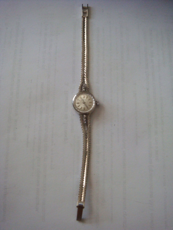 Женские часики Ласточка - 06 апр 2011 13:32.07 × Мини профиль пользователя Ласточка Сообщения: 7589 Зарегистрирован: 03 фев 2010 01:03.58 Статус: Не в сети - 06 апр 2011 13:32.07 #2876263 Белое золото,750 проба,6 камушков. Механизм заменен на Чайку,есть родной механизм. Все на ходу. Очень красивая,ажурная работа. Вес без механизма 13,9. С механизмом 17,0гр. Фото