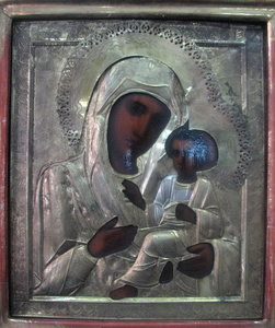 Оклады без клейм, скорее всего латунь.