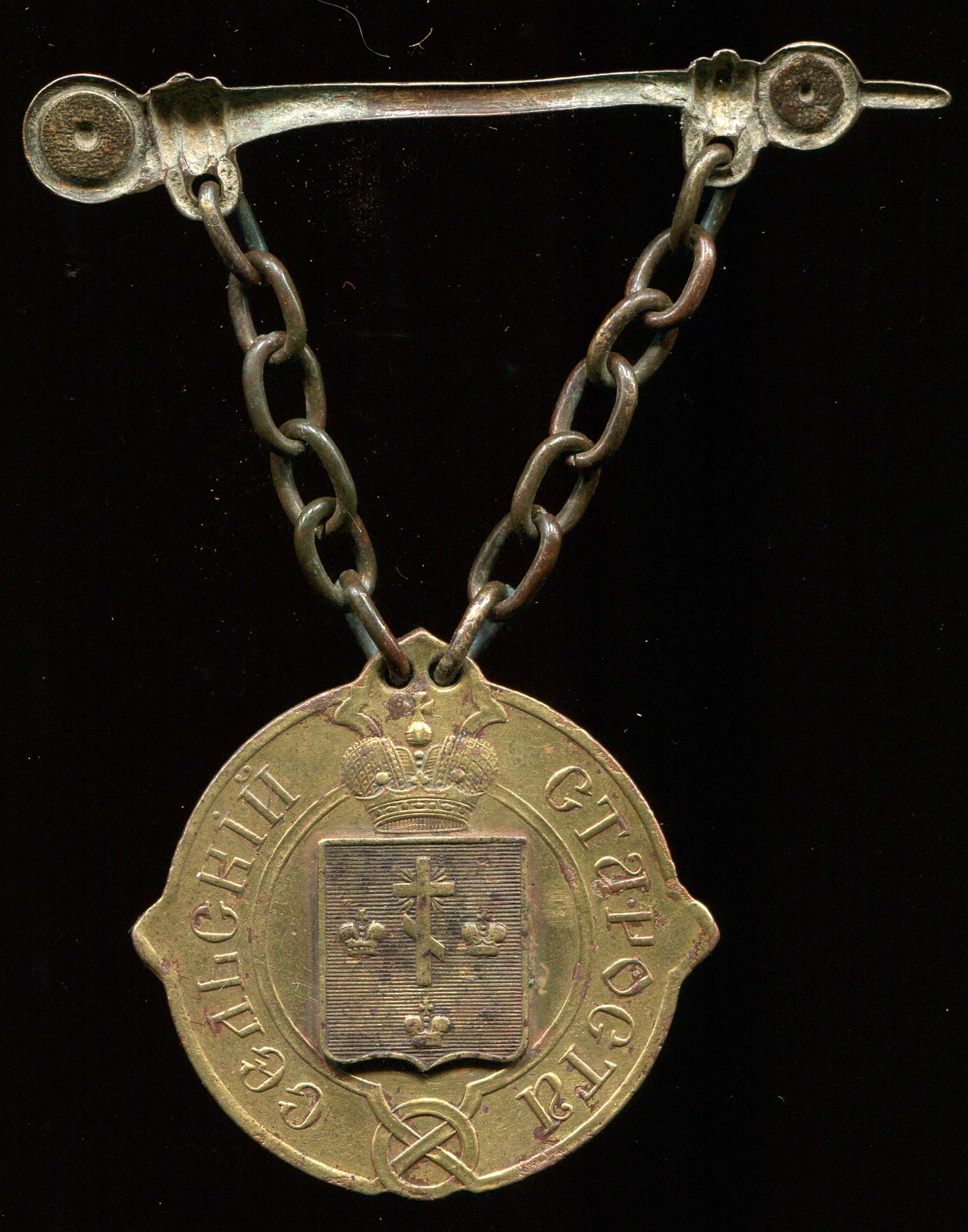 Предлагаю вашему вниманию знак Сельского Старосты Херсонской Губернии с накладным гербом.