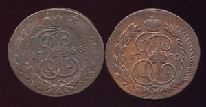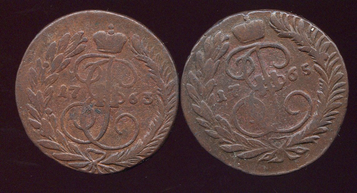 3. 1757 г. – перечекан с облачной копейки СПБ