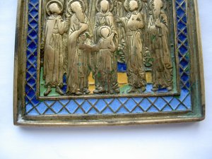 На картинках.Размер 135мм-98мм.Эмаль сохранилась очень хорошо,чего не скажешь о ликах святых...Старт=МПЦ=6000руб.