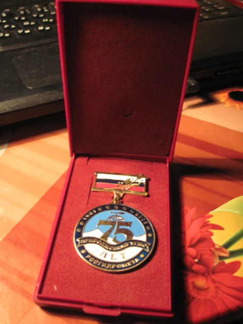ЮБИЛЕЙНЫЙ ЗНАК "75 ЛЕТ ПРИВОЛЖСКОМУ УГСМ РОСГИДРОМЕТА".ПРЕДЛАГАЙТЕ КОМУ ИНТЕРЕСНО.
