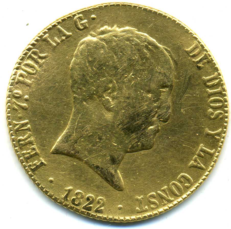 Испания 160 реалов 1822 г. 13,54 гр. 875 проба. $1000