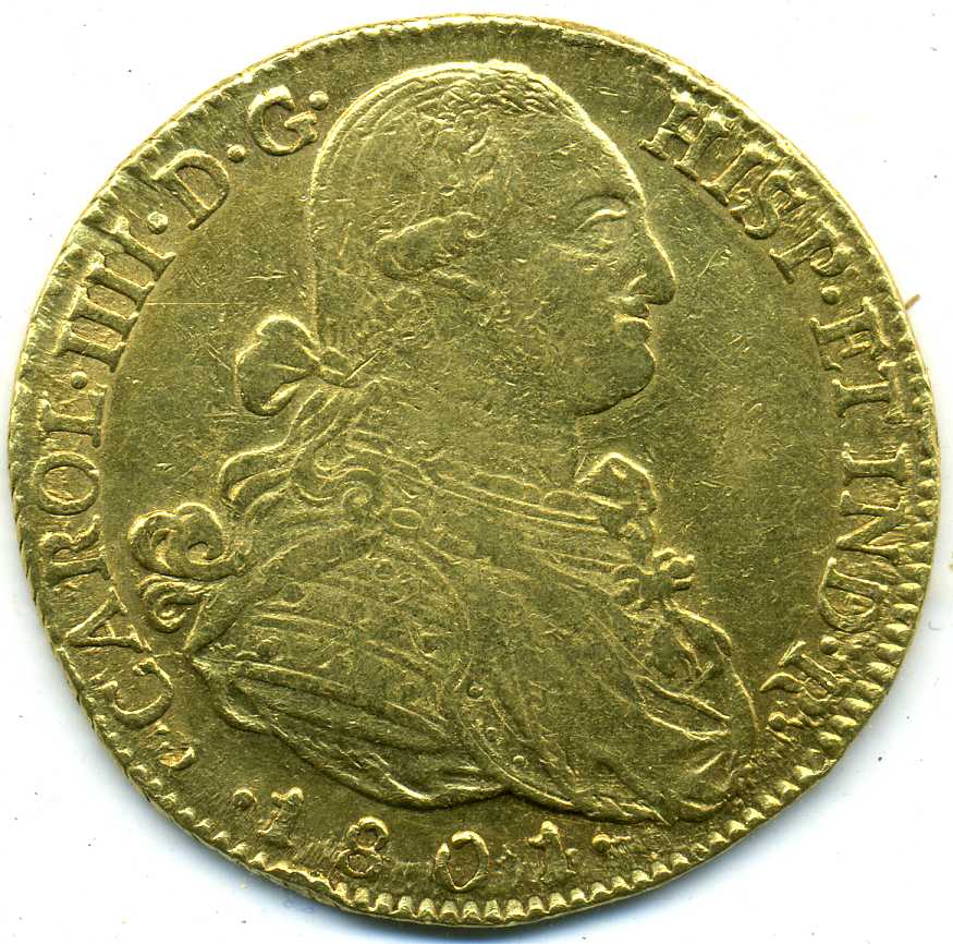 Испания 8 эскудо 1801 г. 27,07 гр. 875 проба. $1750