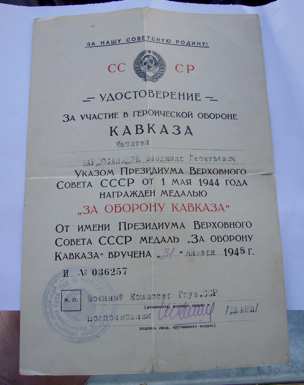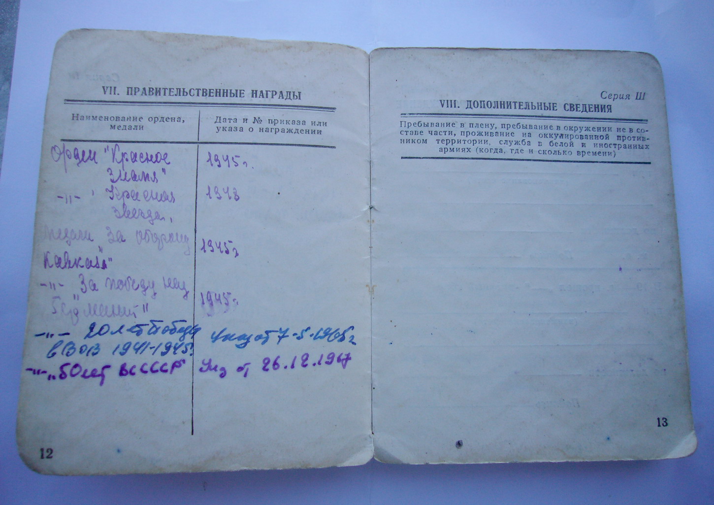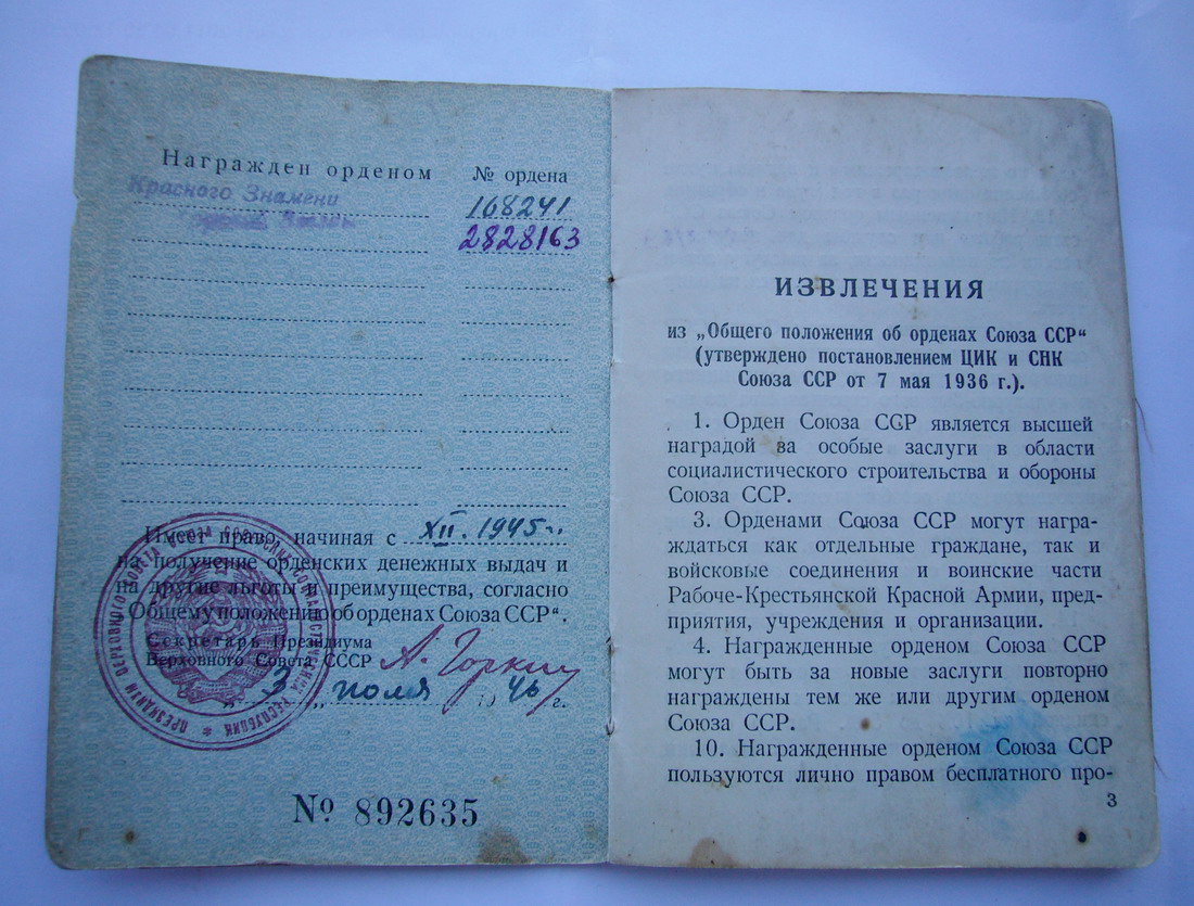 Красного Знамени, Суворова, Кутузова, Богдана Хмельницкого, Александра Невского, Ушакова, Нахимова, Отечественной Войны, Красной Звезды, Славы, За Службу Родине в ВС СССР
