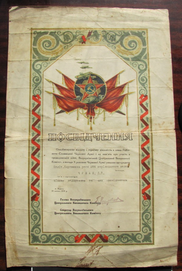 Вот такие доки на бат.комиссара Чумак Деомида Тимофеевича.