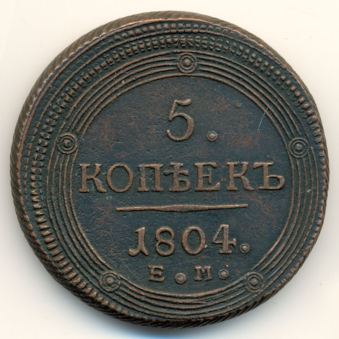 Описание: Лот № 1053. 5 копеек. Ильин - 5р, Уздеников - точка 1804г. ЕМ Cu .