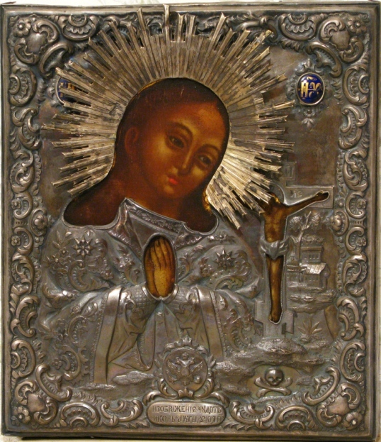 очень высокий рельеф на окладе, вес оклада 416 гр.