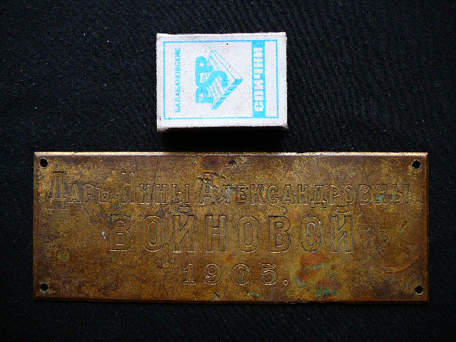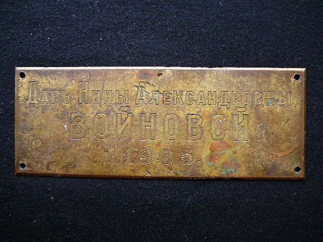 Дарственная табличка на икону М.В. - 10 июл 2011 12:00.00 × Мини профиль пользователя М.В. Сообщения: 1966 Зарегистрирован: 04 ноя 2009 02:27.25 Откуда: Москва Статус: Не в сети - 10 июл 2011 12:00.00 #3076938 Дарственная табличка на икону. 1905 год, латунь. Длинна - 16.5 см., высота - 6.5 см.По РФ + 150 рублей пересыл. Фото