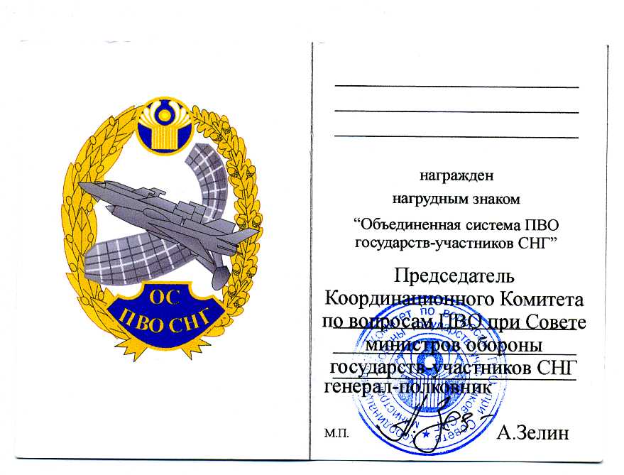 Нагрудный знак "Объединенная Система ПВО СНГ" + ЧИСТЫЙ док