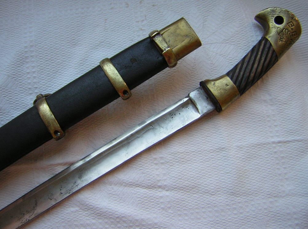 "... клинок и эфес такие же ,как у шашки командного и начальствующего состава,но все три три "гайки" c внешней стороны имеют гнёзда для штыка...