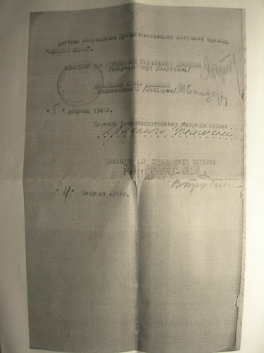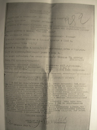 Имеются ксерокопии Наградного листа, Приказа и Учетной карточки.