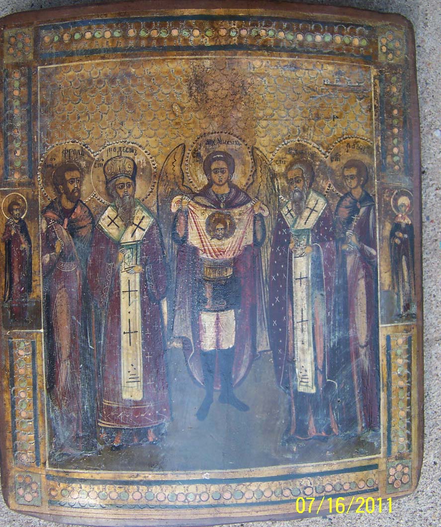 Предлагаю икону "Архангел Михаил с предстоящими :Св.Фрол,Св.Модест,Св.Власий,Св.Лавор".Рубеж 18-19 веков.