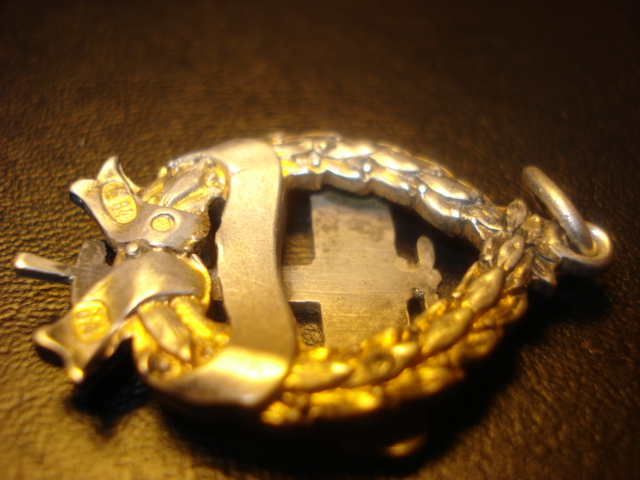 Размеры 35х24 мм, вес 9,4 гр. Cеребро, позолота, именное клеймо ВД (мастерская Эдуарда) и пробирные клейма 84 с головкой.