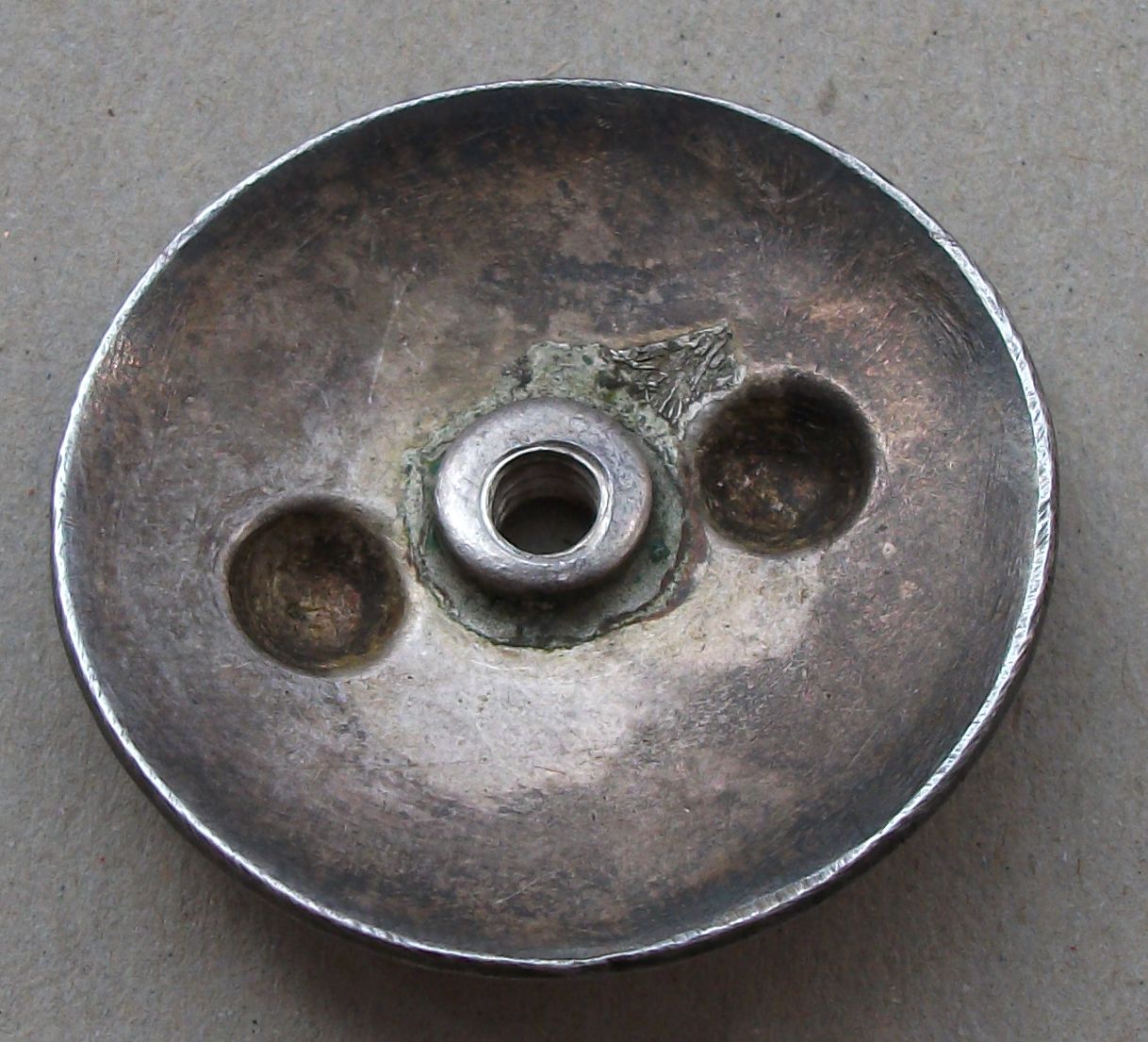 Гайка серебро,родная,двухступенчатый фланец,накручивается прекрасно,резьба в норме!