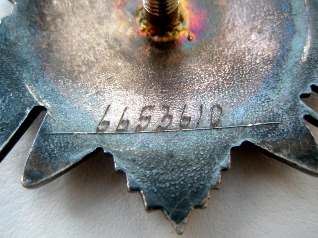 Орден (юбилейный вариант) "Отечественной войны" II степени № 6 653 610. изготовлен на Ленинградском монетном дворе в 1989г, № 6 618 301 - 6 655 050, партия интересна тем, что 500 экземпляров были без номера. Отличное коллекционное состояние, красивая родная патина, интересный "почерк" номера