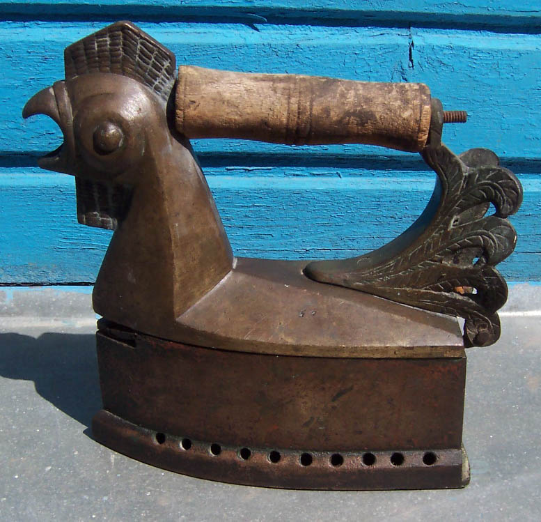 Предлагаю медный утюг в виде курицы.Был покрыт бронзой (латунью),местами стерта.