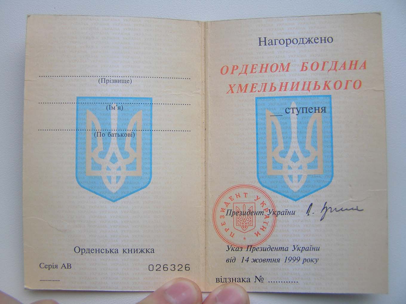 Орденская книжка "За мужність" (пустая, не заполненная) Герой Украины - 24 авг 2011 21:05.14 × Мини профиль пользователя Герой Украины Сообщения: 19283 Зарегистрирован: 20 апр 2010 14:22.48 Откуда: Украина Статус: Не в сети - 24 авг 2011 21:05.14 #3103846 Тема поднималась пользователем Герой Украины 24 авг 2011 21:05.14. +380931624321 Viber, WhatsApp, TelegramSkype: ALEXANDR.GEROY E-Mail: Voenznak@bigmir.net