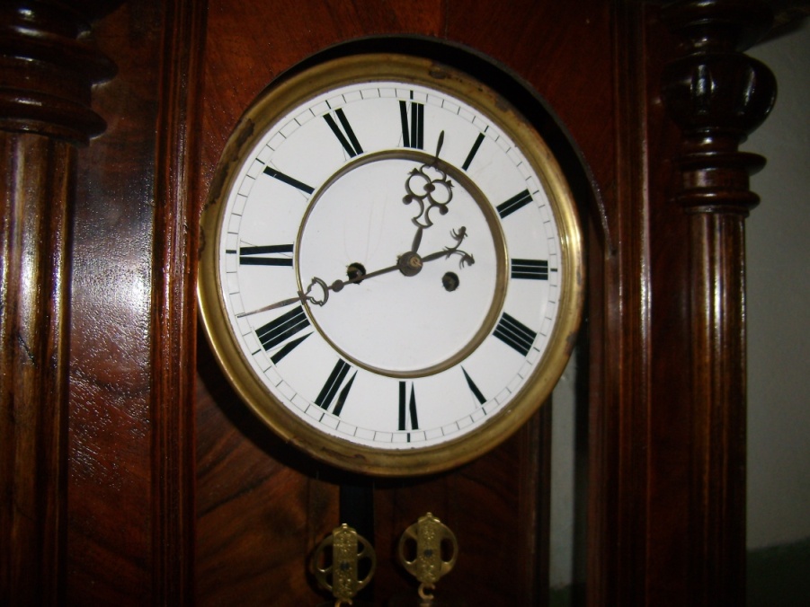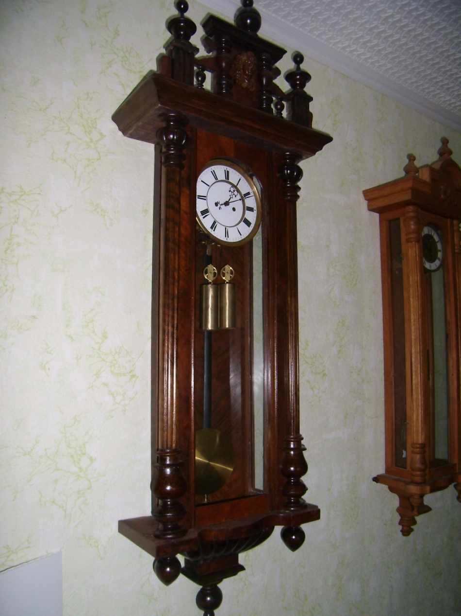 ЧАСЫ-РЕГУЛЯТОР, С БОЕМ. ПРОИЗВОДСТВО АВСТРИЯ, 19 ВЕК. МЕХАНИЗМ РУЧНОЙ РАБОТЫ. КОРПУС - ОРЕХ, ПОКРЫТИЕ - ШЕЛЛАК.