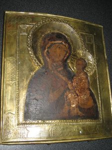 Икона Божия Матерь Тихвинская.Старообрядческая Икона.Размер 30х26,5х2,7 см. Дерево,тмпера,левкас.Без вмешательств.В хорошей сохранности.Басменный оклад.