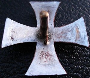 Знак был лет 15 назад хромирован. (Кто-то думал, что так будет новее и красивее). За это время хромирование успело порядочно пообтереться. Без закрутки. Бронза, черная эмаль.