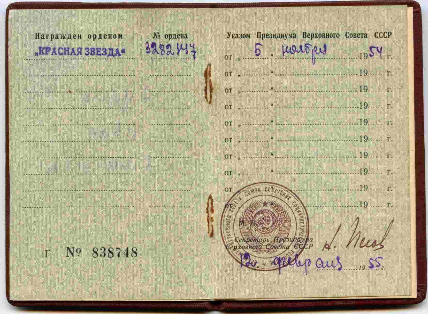 Ордена Знак Почета и Красной Звезды видимо получил находясь на службе в МВД.