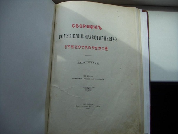 Продается старинное издание: Майков А., Жуковский В., Толстой А., Мей Л. и др. - Сборник религиозно-нравственных стихотворений. C рисунками Р. Шнейдера. М. Из-е Московской Синодальной Типографии. 1905 г. 130 стр, множество иллюстраций. Твердый издательский переплет (есть фрагменты реставрации современной кожей в углах обложки и корешка). Увеличенный формат. В очень хорошем состоянии.