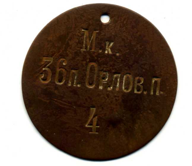 Увольнительный жетон 36 пехотный Орловский полк
