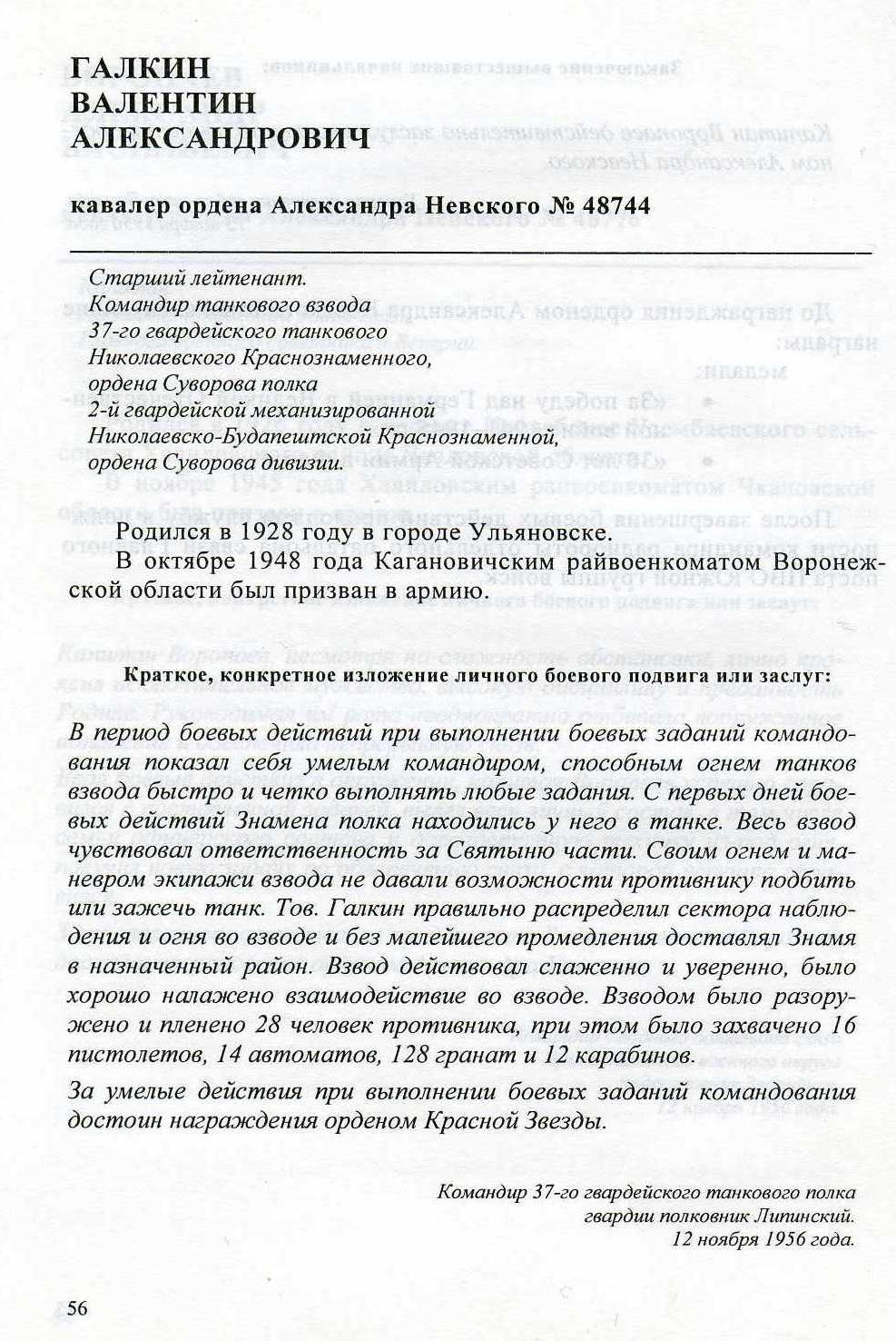 Представлены служебные данные награждённых,изложения подвигов и заслуг из наградных листов.Указаны номера орденов А.Невского,а также других орденских знаков кавалеров.