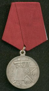 На реверсе – стреляющий из винтовки красноармеец, обмундированный в буденовку и шинель и вооруженный, вдобавок, пистолетом (на поясном ремне в кобуре). Слева снизу – ветвь оливковая ветвь победителя-триумфатора, а на заднем плане – крупно выполненная красноармейская звезда, но дополненная надписями: «СССР» и «1940».