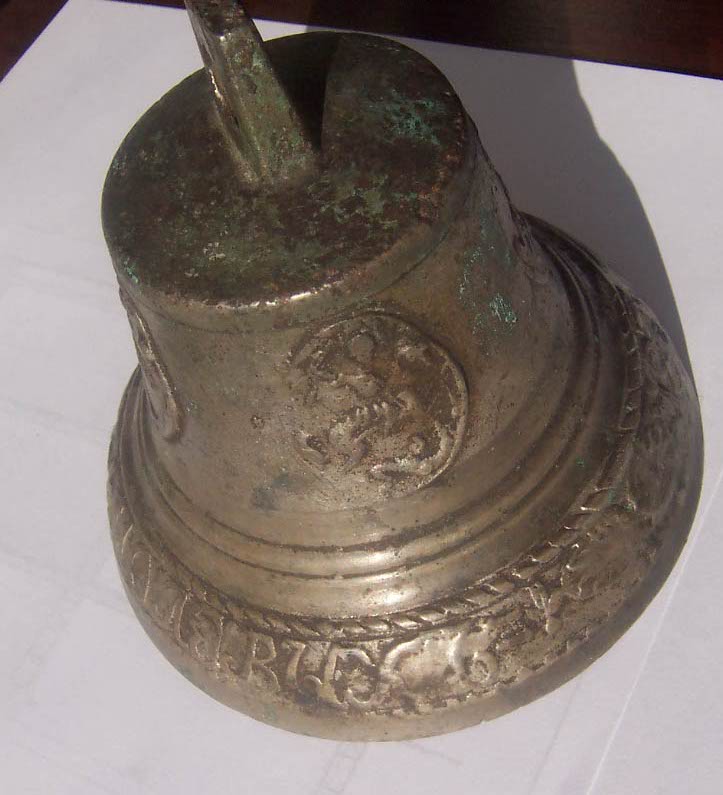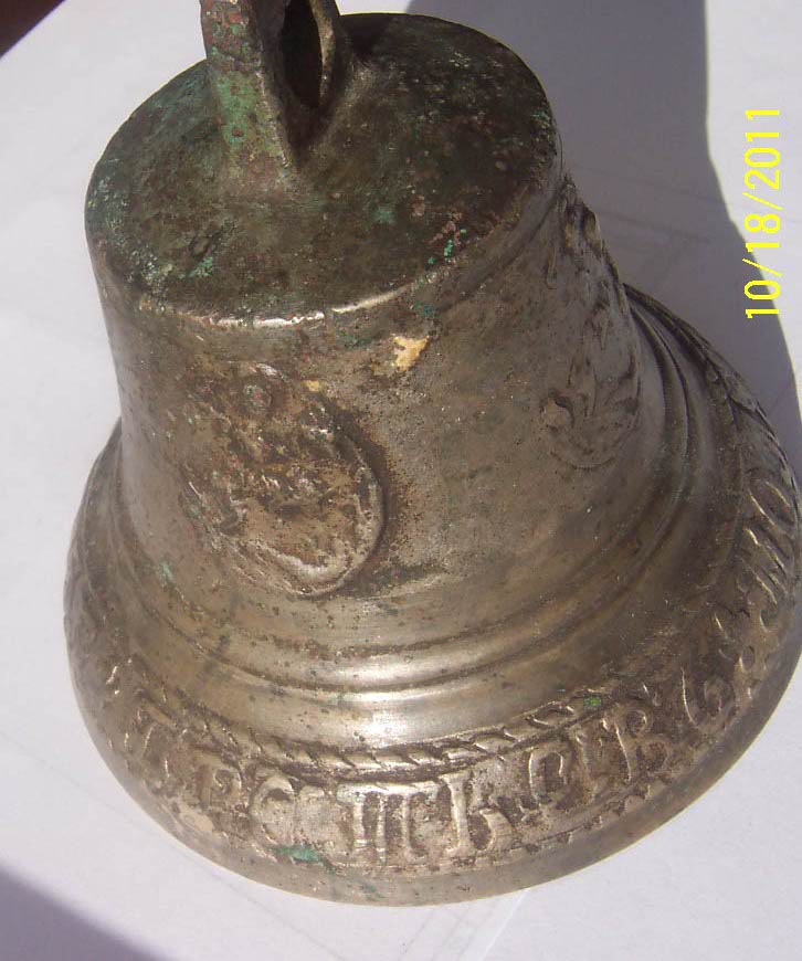 Предлагаю колокольчик с надписью"Братьевъ Молевыхъ. 1871 года" и четыремя гербами "Св.Георгий на коне"..