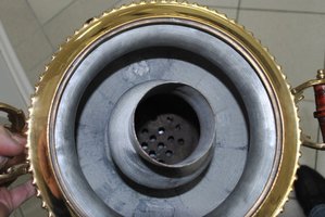Самовар 5-6 литров, артельный, без клейм. Реставрация. Пайка задней грани. Подобрана корона. Отсутствует заглушка дымохода, ищу, диаметр трубы 720. МПЦ 23000 руб. по РФ.