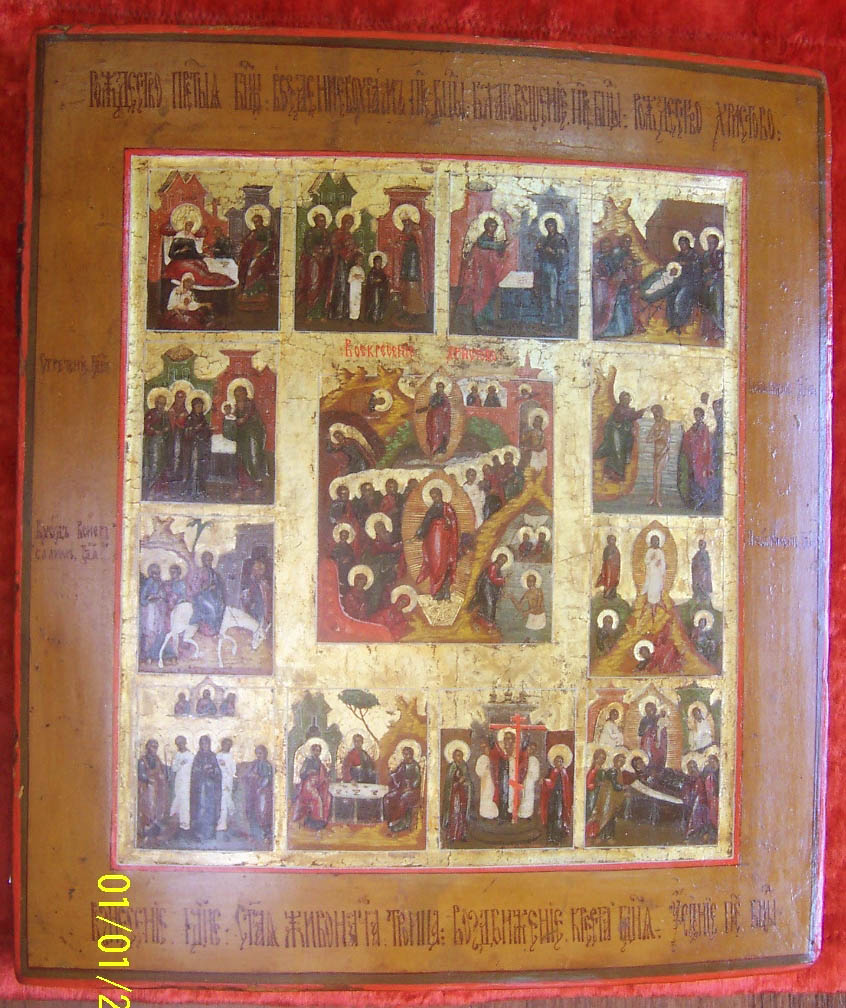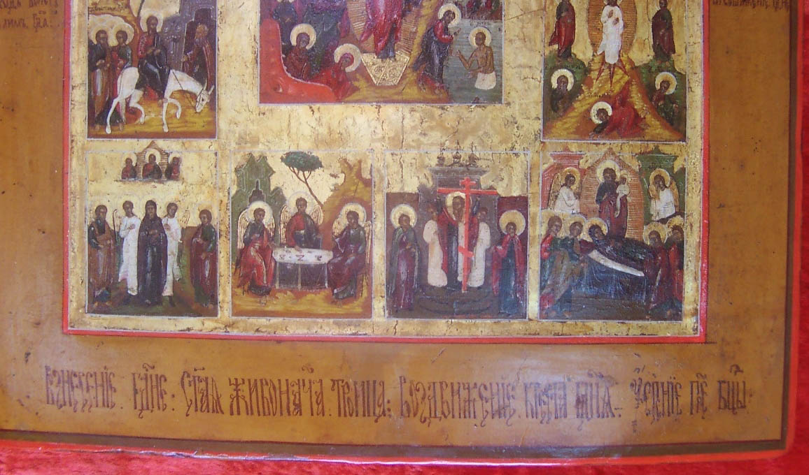 Предлагаю икону "Двунадесятые праздники",на золоте,левкас,темпера,ковчег.