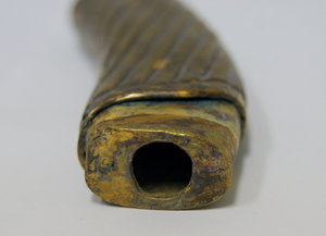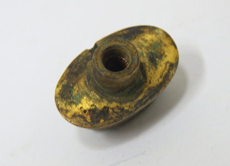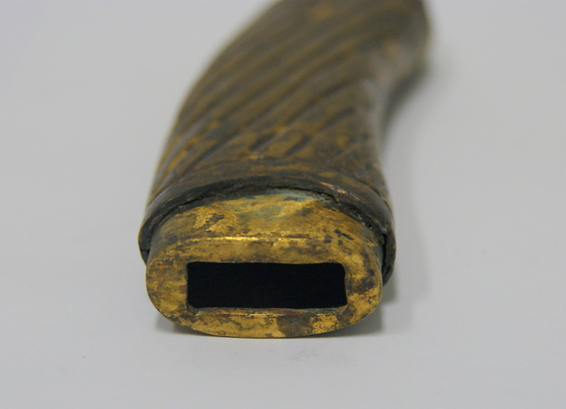 Господа, приобрелась у местного населения вот такая замечательная вещица. Дужка гарды тоже где-то есть, но ее заиграли дети, так что пока рукоять будет продаваться в таком виде. На всех частях хорошо видны следы позолоты, также присутствуют сборочные клейма 34. В общем, предлагайте.