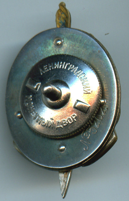 Знак сделан методом штамповки из серебра 900 пробы. Эмаль горячая.