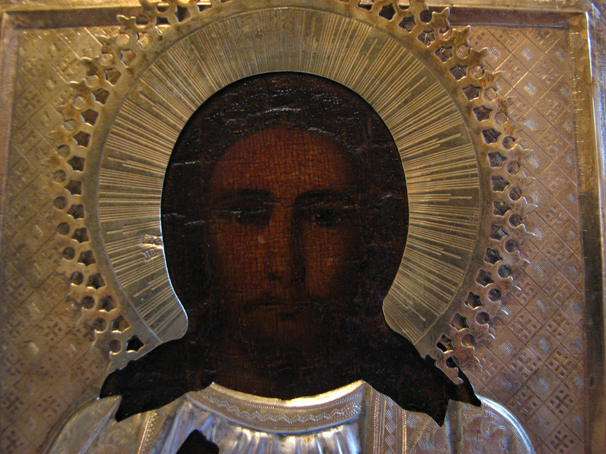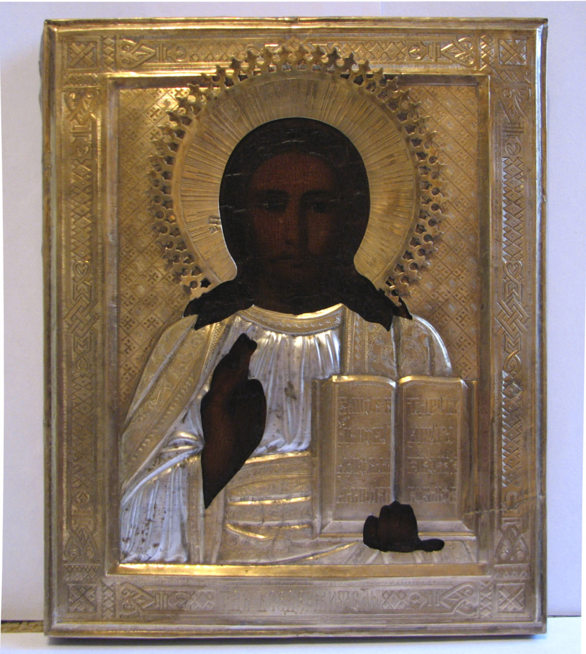 Икона Господь Вседержитель в серебрянном окладе.Размер 18х14см.