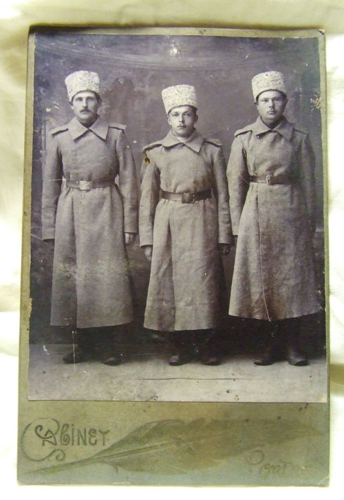 Продаю старую дореволюционную фотографию трех бравых военных (кабинетный чёрно-белый портрет 10 на 13 см, наклеенный на паспорту, снятый до 1917 года), в хорошем состоянии.