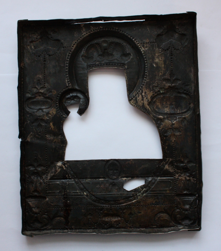 Надпись по торцу: ВЪРИЗЕ*ВЕСЪ*48 ЗО*ЗДЕЛАНА РИЗА*1803*ГОДУ*МЕСЯЦА*МАРТА*1ЧИСЛА*ФЕДОРЪ*МАТВЕВСКОИ