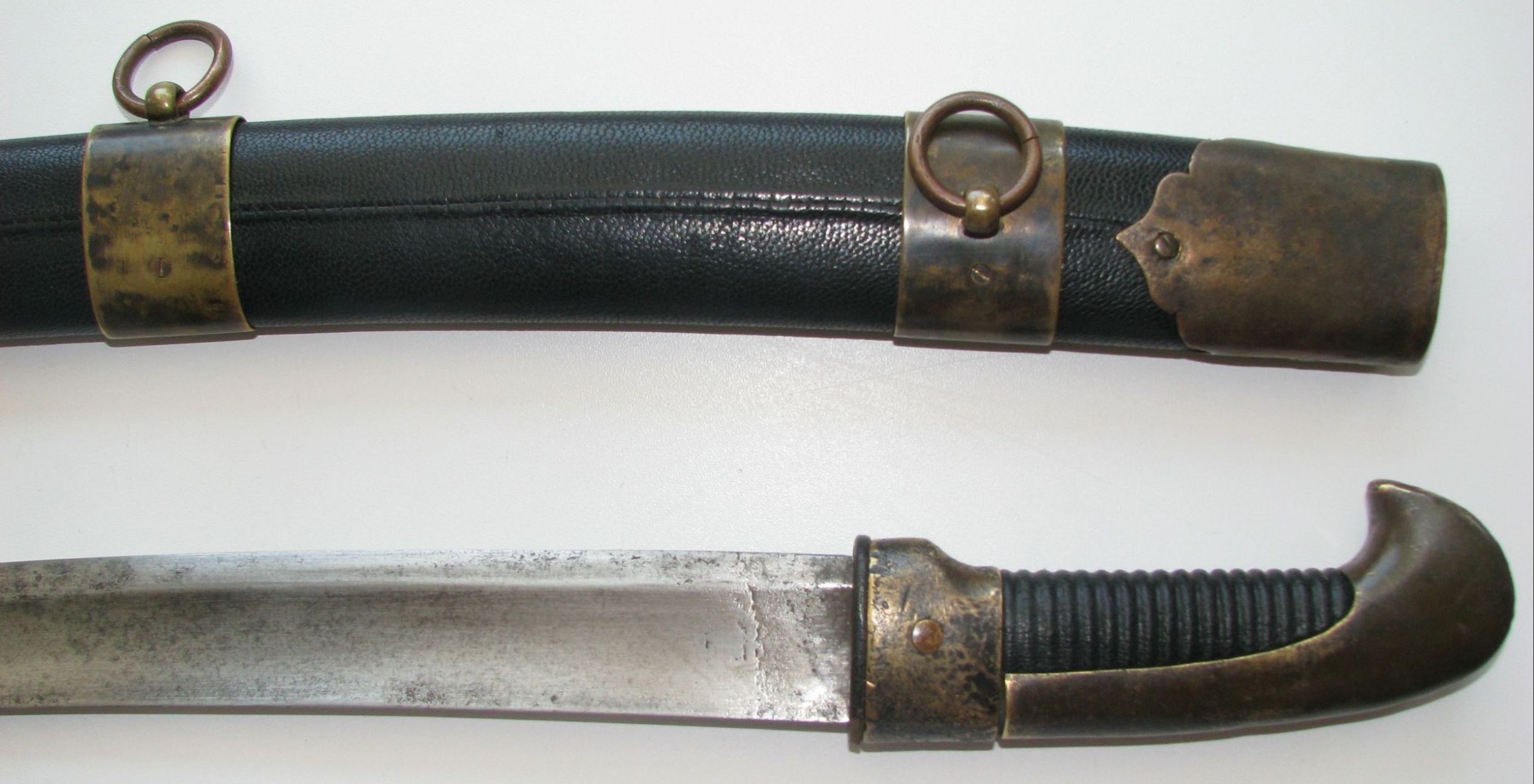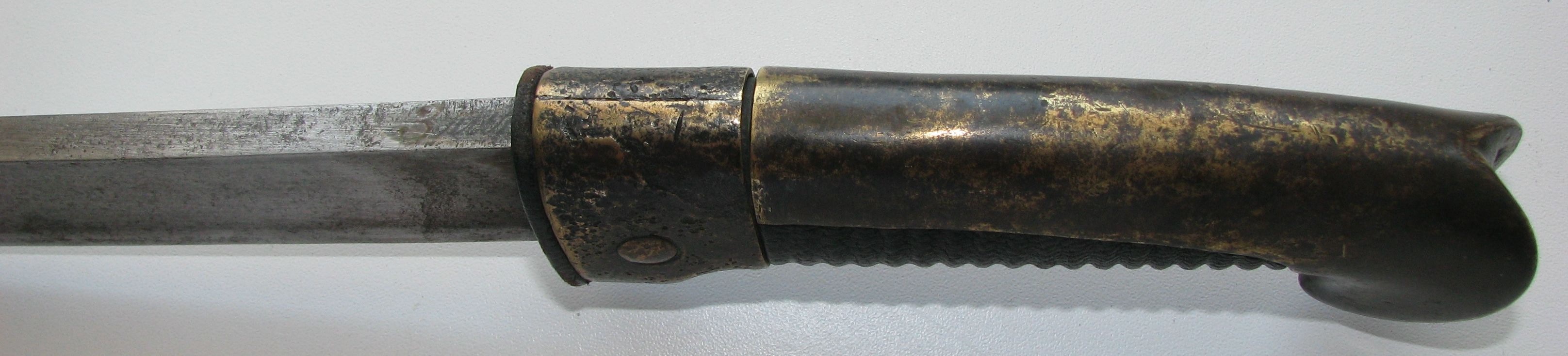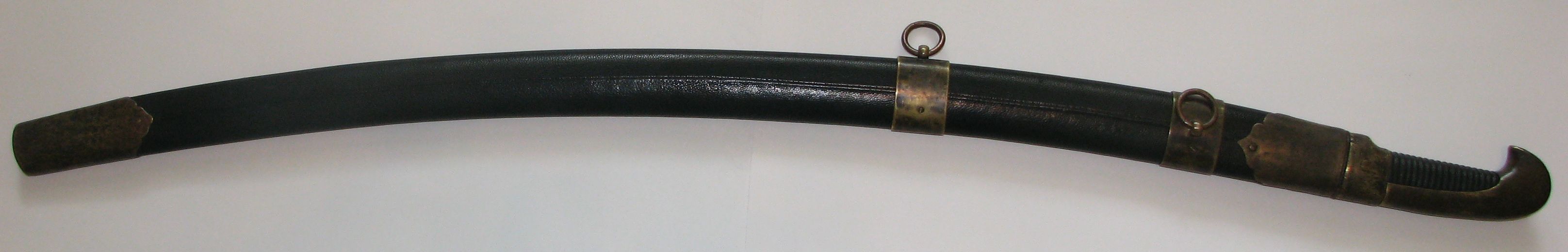 На ножнах перетянута кожа-шегрень,ввиду ветхости старой.
