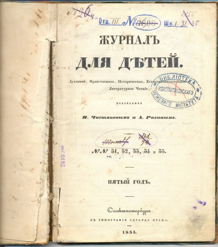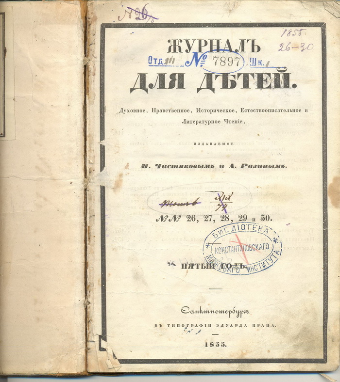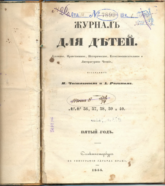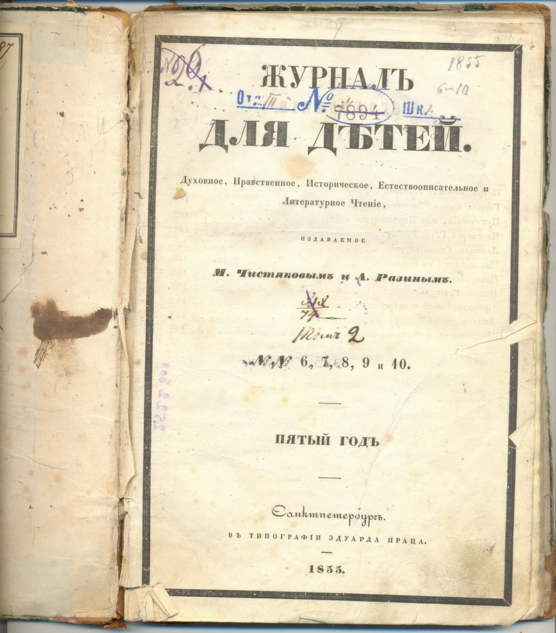 Re: Журналы для детей 1855г 6 томов axen - 23 дек 2011 19:03.28 × Мини профиль пользователя axen Сообщения: 6895 Зарегистрирован: 06 май 2006 09:55.17 Откуда: москва Статус: Не в сети - 23 дек 2011 19:03.28 #3400659 еще Фото Свет,да одолеет тьму!