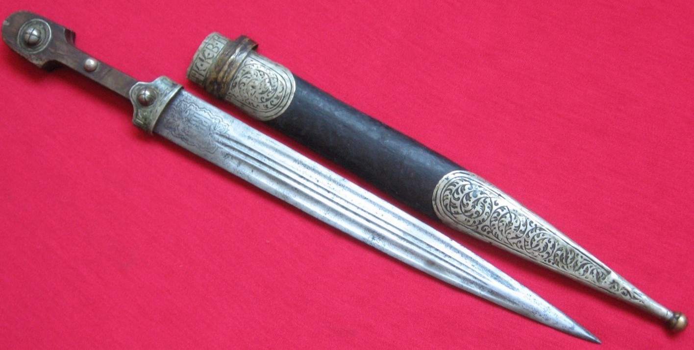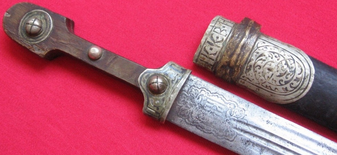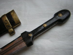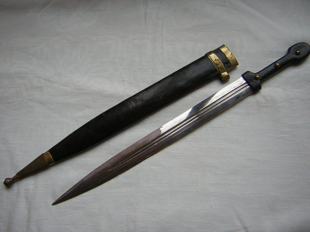 Клинок стальной прямой двулезвийный , с двумя узкими долами