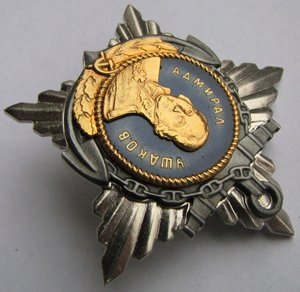 Копия ордена Ушакова 1 степени. Не серебро. Металл основы - сплав свинца и олова. Эмали холодные. Позолота, посеребрение. По размерам соответствует. Вес - 42 г. с закруткой (плюс - минус 2 г.). МПЦ - 2800 руб.
