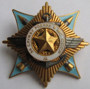 Копия ордена За службу Родине в ВС СССР 1 степени. Не серебро. Металл основы - сплав свинца и олова. Эмали холодные. Позолота, посеребрение. По размерам соответствует. Вес - 79 с закруткой (плюс - минус 2 г.). МПЦ - 2800 руб.