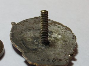 В левом нижнем углу ленты- скол эмали до металла (подмазан холодной эмалью). Вживую практически не заметен. Предложите.