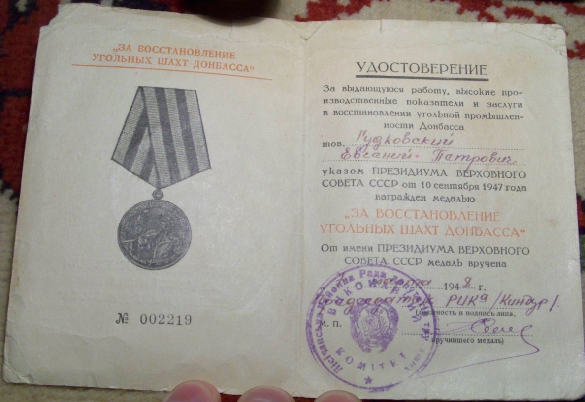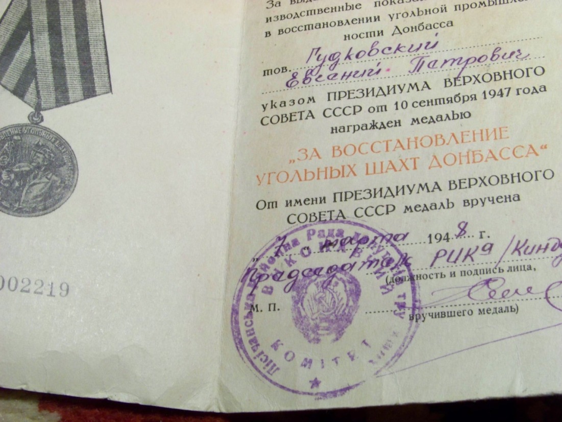 Ранний док,большего размера.Выдан в Лисичанском районе.В качестве бонуса док на безномерное трудовое отличие.