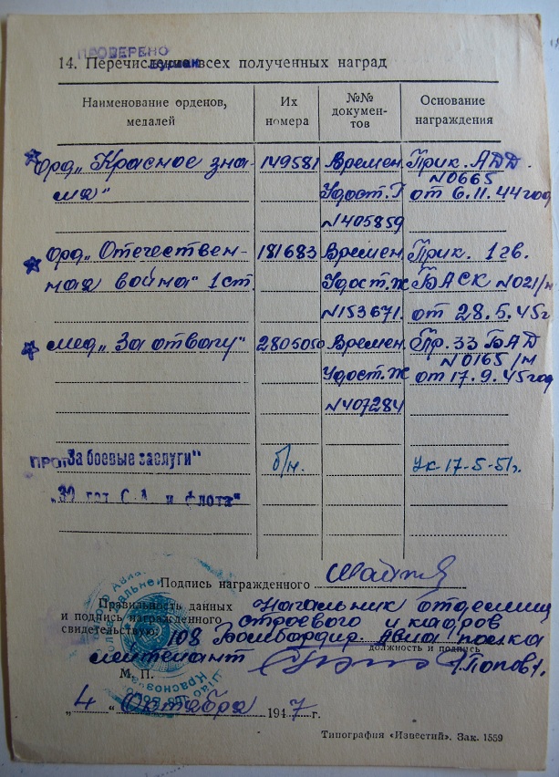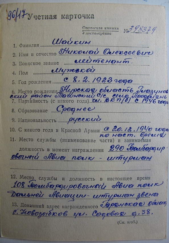 Шайкин Николай Алексеевич,290 Бомбардировочный АП,штурман.