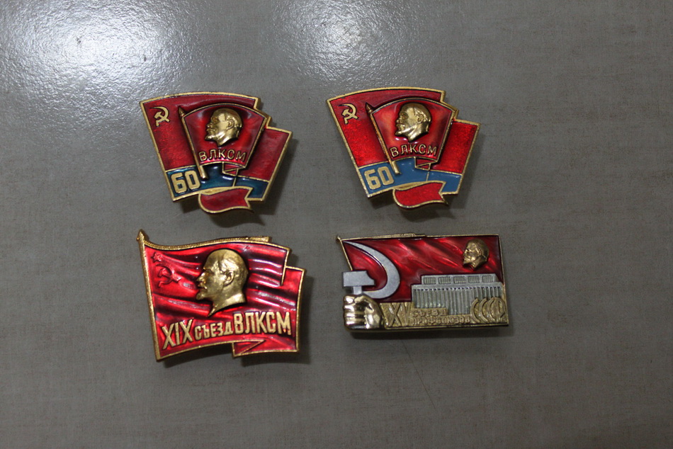 На двух ВЛКСМ разные оттенки синей эмали