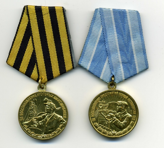 Медали Серп и Молот, За Трудовую Доблесть, За Трудовое Отличие, За Доблестный Труд в Великой Отечественной Войне,За Восстановление Предприятий Чёрной Металлургии Юга, За Восстановление Угольных Шахт Донбасса, За Освоение Целинных Земель, За Строительство БАМ, За Преобразование Нечерноземья РСФСР, За Освоение Недр и Развитие Нефтегазового Комплекса Западной Сибири, Ветеран Труда